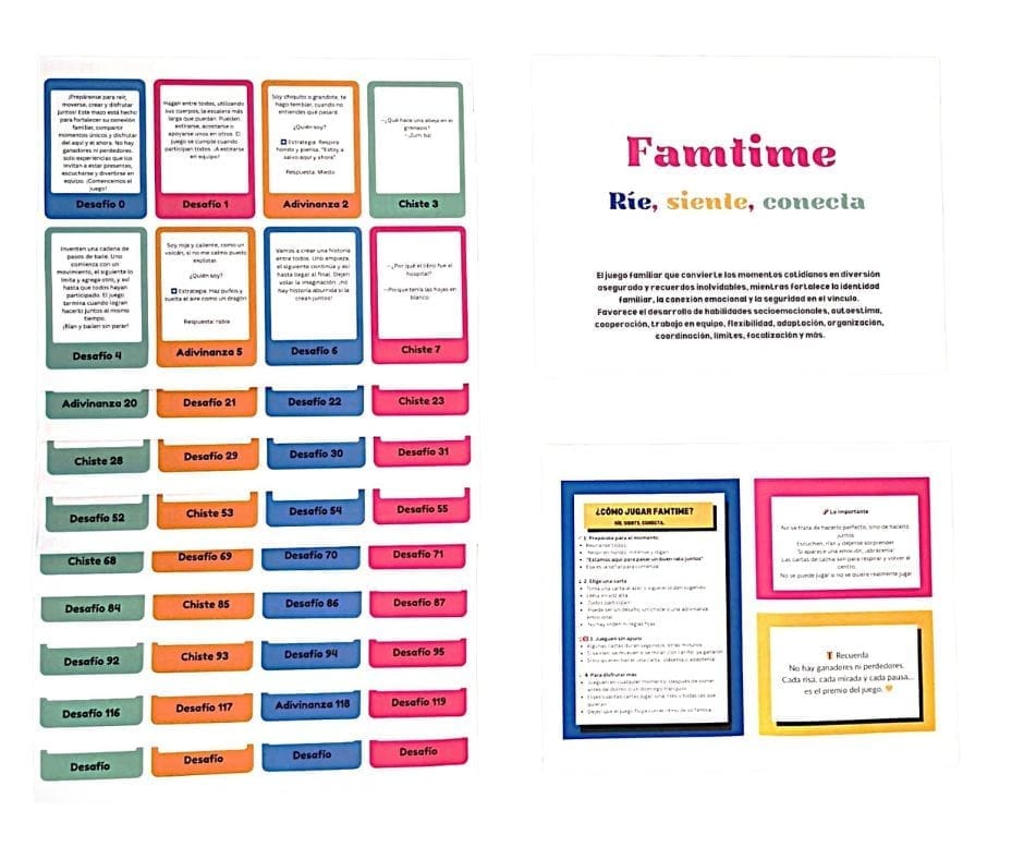 Famtime es un juego de cartas descargable con chistes, adivinanzas y desafíos colaborativos que invita a participar, reír y conectar en familia.